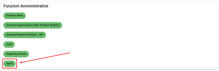 Successivamente il Responsabile URP potrà accedere, tramite le Funzioni Amministrative, al nuovo pulsante "AppIO":