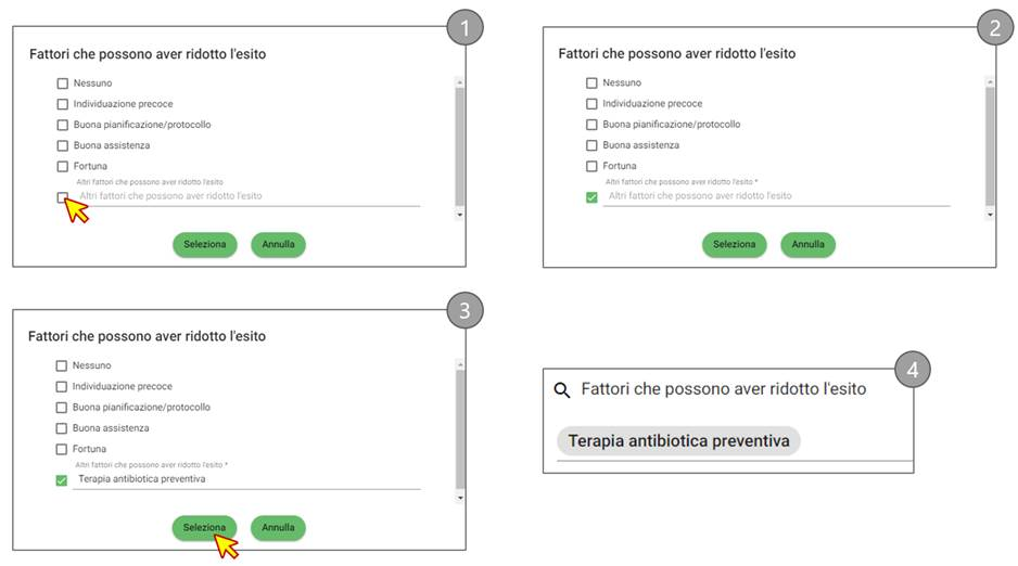 In alcuni campi a scelta singola o multipla, è possibile selezionare la risposta “Altro” che richiede all’utente la compilazione di un campo testo obbligatorio. Di seguito sono descritti i passaggi per la compilazione di un campo che prevede la risposta “Altro” e il relativo campo descrittivo.