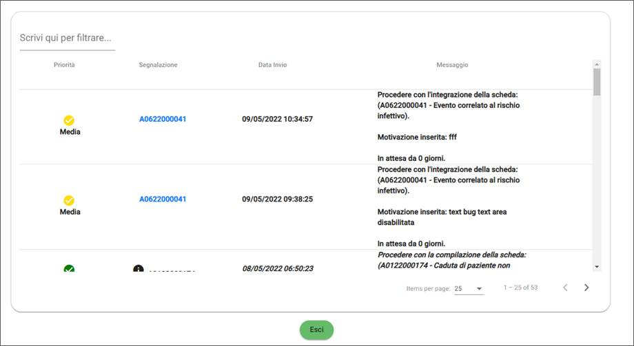 • Le notifiche con il numero della segnalazione in azzurro indicano che è necessaria un’attività da parte dell’utente su quella segnalazione.