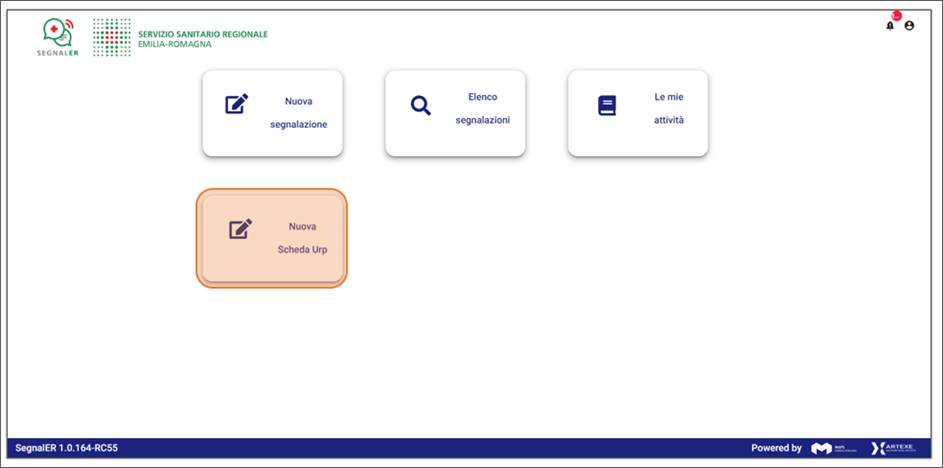 Gli utenti provvisti del ruolo Operatore URP, nella schermata principale dell’applicativo, vedono il pulsante Nuova scheda URP.