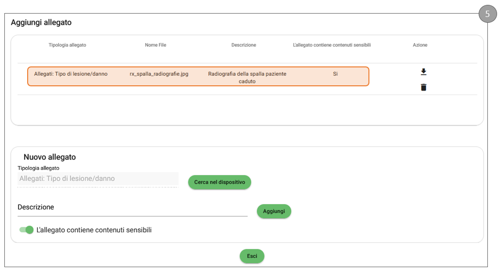 Premendo questa icona, l’utente può eliminare l’allegato.