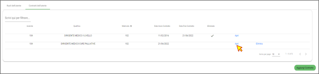 Selezione di un contratto dal tab Contratti dell'utente.