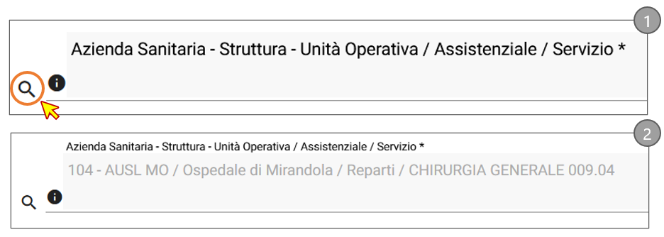Di seguito sono descritti i passaggi per la compilazione del campo Azienda Sanitaria – Struttura – Unità Operativa / Assistenziale / Servizio.